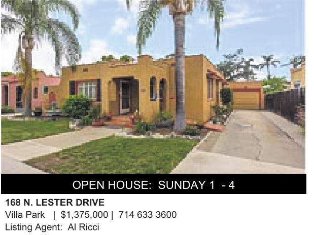 OPEN HOUSE: SUNDAY 1 - 4 168 N.LESTER DRIVE Villa Park | $1,375,000 | 714 633 3600 Listing Agent: AlRicci