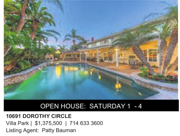 OPEN HOUSE: SATURDAY 1 - 4 10691 DOROTHY CIRCLE Villa Park | $1,375,500 | 714 633 3600 Listing Agent: Patty Bauman