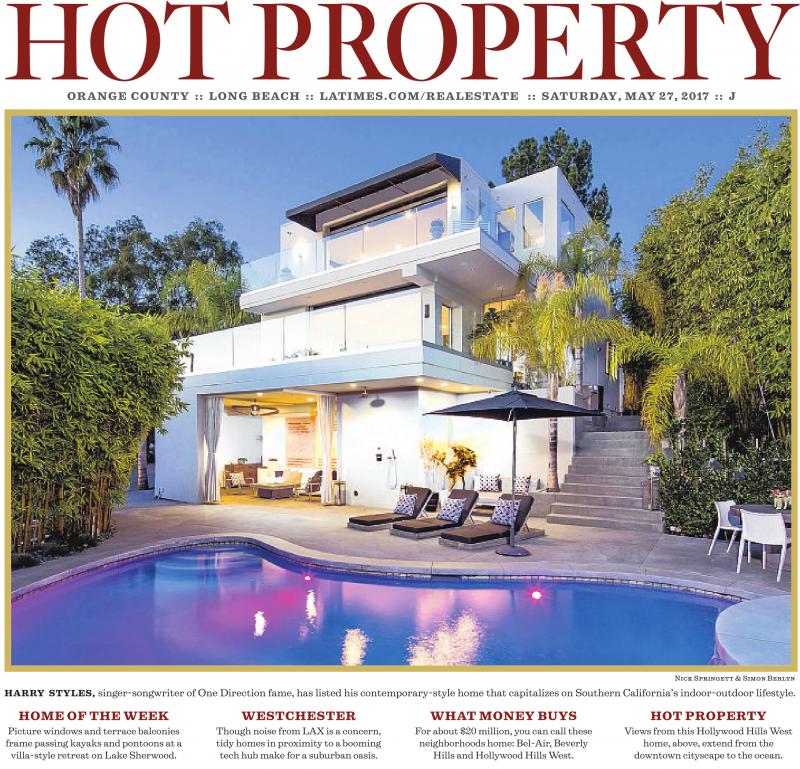 HARRY STYLES, singer-songwriter of One Direction fame, has listed his contemporary-style home that capitalizes on Southern California’s indoor-outdoor lifestyle.