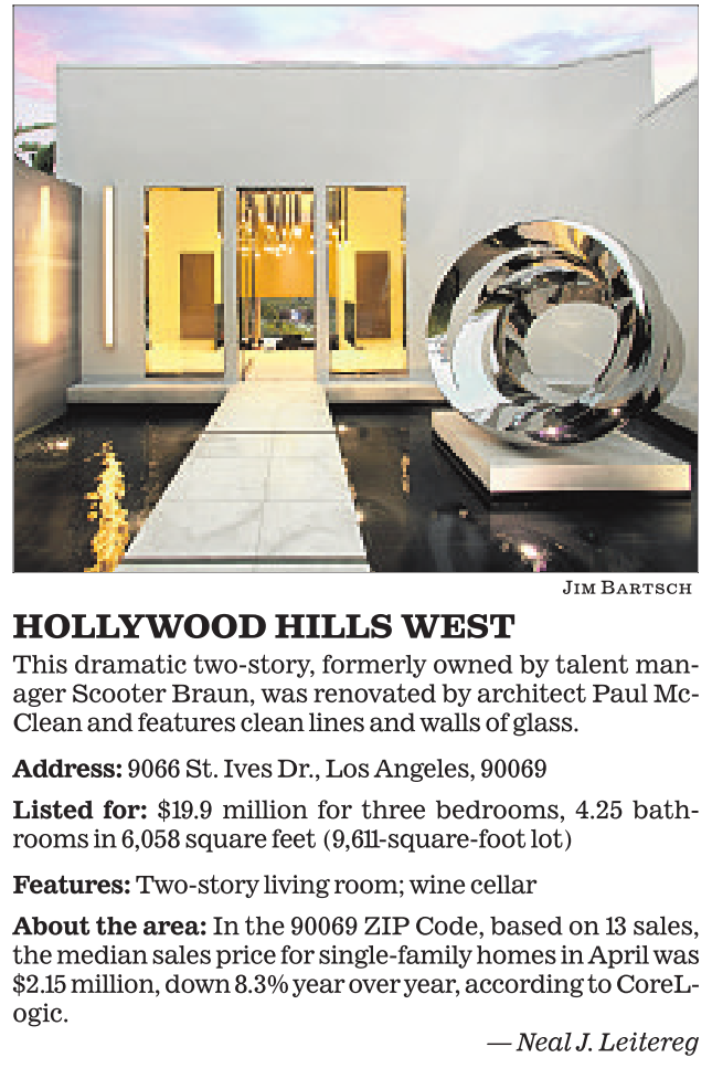 HOLLYWOOD HILLS WEST This dramatic two-story, formerly owned by talent manager Scooter Braun, was renovated by architect Paul Mc- Clean and features clean lines and walls of glass.