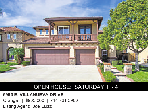 OPEN HOUSE: SATURDAY 1 - 4 6993 E.VILLANUEVA DRIVE Orange | $905,000 | 714 731 5900 Listing Agent: Joe Liuzzi
