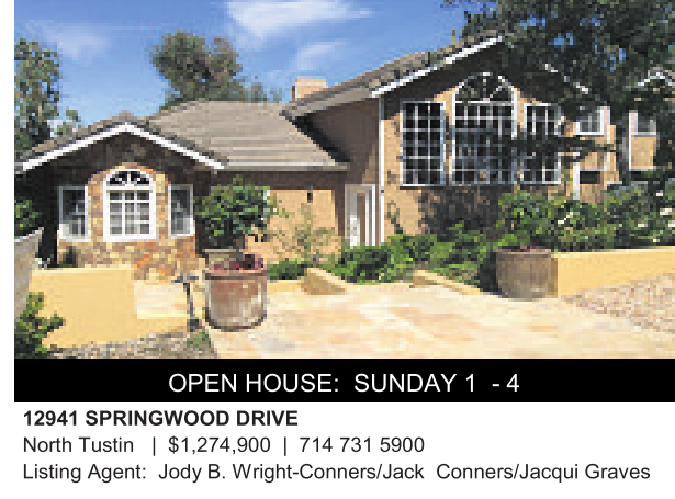 OPEN HOUSE: SUNDAY 1 - 4 12941 SPRINGWOOD DRIVE North Tustin | $1,274,900 | 714 731 5900 Listing Agent: Jody B.Wright-Conners/Jack Conners/Jacqui Graves
