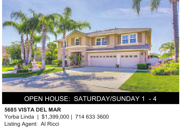 5685 VISTA DEL MAR Yorba Linda | $1,399,000 | 714 633 3600 Listing Agent: AlRicci