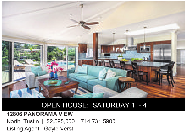 OPEN HOUSE: SATURDAY 1 - 4 12806 PANORAMA VIEW North Tustin | $2,595,000 | 714 731 5900 Listing Agent: Gayle Verst
