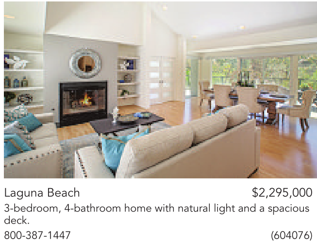 Laguna Beach $2,295,000 3-bedroom, 4-bathroom home with natural light and a spacious deck.