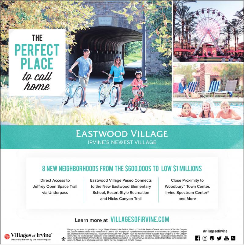 Plan, pricing and square footage subject to change. Villages of Irvine®, Irvine Pacific®,Woodbury™ andIrvine Spectrum Center® are trademarks of The Irvine Company LLC, used for marketing villages of new homes in Irvine, California USA.All projects are in planned communities developed by Irvine CommunityDevelopment Company LLC, an affiliate of The Irvine Company LLC. “Masterfully Planned by the Irvine Company” means thatthe Irvine Company created the master land plan for all Irvine Company communities.The “master land plan”includes the overall entitlement and designofeach community but does not include the design, construction and sale of homes. The design, construction andsaleofhomesisthe sole responsibilityofcommunity builders. The Irvine Company is not designing, constructing or offering homes for sale in any community.Models do not reflect racial preference. ©2017 The Irvine Company LLC. All Rights Reserved.