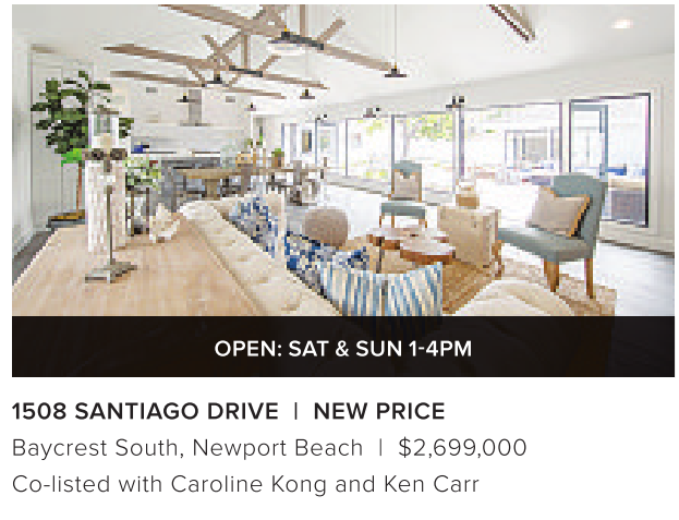 1508 SANTIAGO DRIVE | NEW PRICE Baycrest South, Newport Beach | $2,699,000 Co-listed with Caroline Kong and Ken Carr