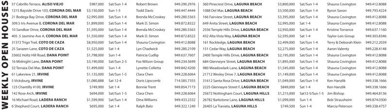 21 Bodega BayDrive, CORONA DEL MAR $2,995,000 Sat/Sun 1-4 Brenda McCroskey 949.280.5563