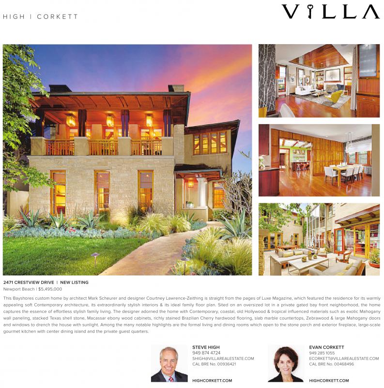 EVAN CORKETT 949 285 1055 ECORKETT@VILLAREALESTATE.COM CAL BRE No. 00468496