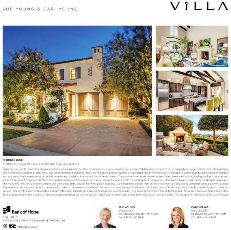 SUE YOUNG 949 395 5112 SYOUNG@VILLAREALESTATE.COM CAL BRE No. 01087631