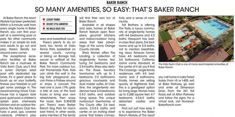 SO MANY AMENITIES, SO EASY: THAT’S BAKER RANCH