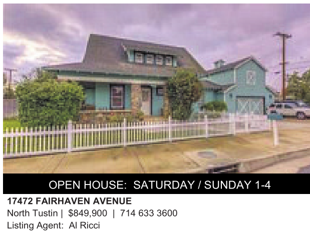 OPEN HOUSE: SATURDAY / SUNDAY 1-4 17472 FAIRHAVEN AVENUE North Tustin | $849,900 | 714 633 3600 Listing Agent: AlRicci