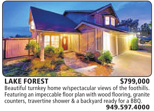 LAKE FOREST $799,000 Beautiful turnkey home w/spectacular views ofthe foothills. Featuringanimpeccable floorplanwithwood flooring,granite counters, travertineshower&abackyard readyfor aBBQ.