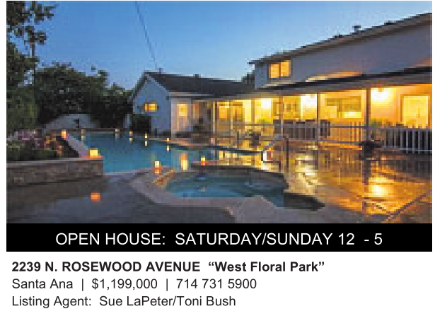 2239 N.ROSEWOOD AVENUE “West Floral Park” Santa Ana | $1,199,000 | 714 731 5900 Listing Agent: Sue LaPeter/Toni Bush