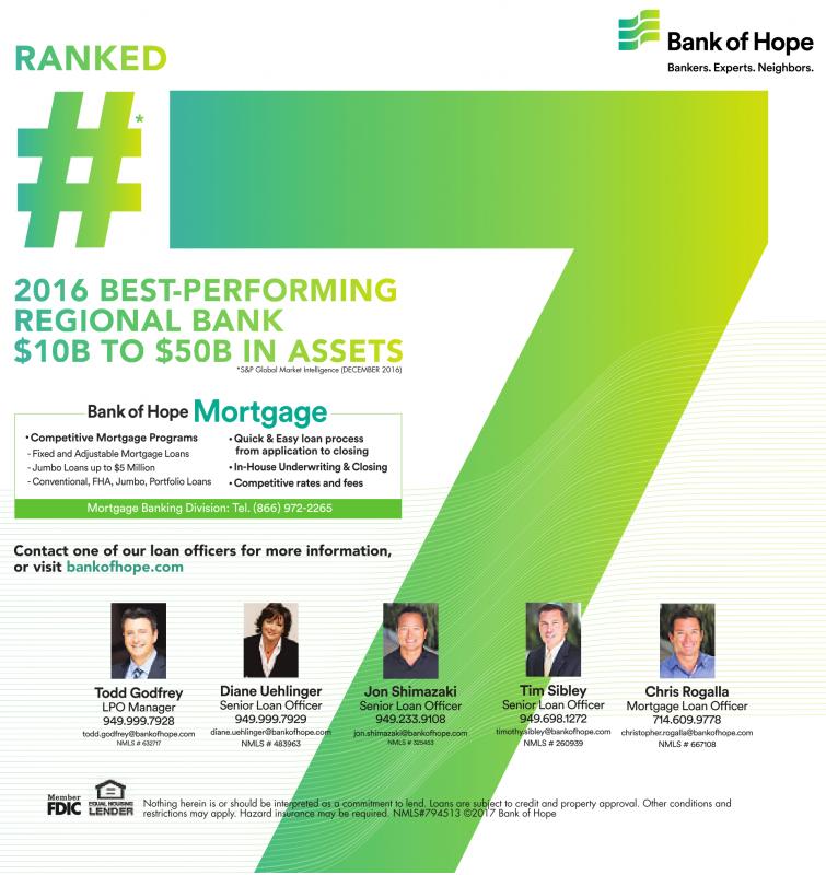 Nothing herein is or should be interpreted as a commitment to lend. Loans are subject to credit and property approval. Other conditions and restrictions may apply. Hazard insurance may be required. NMLS#794513 ©2017 Bank of Hope