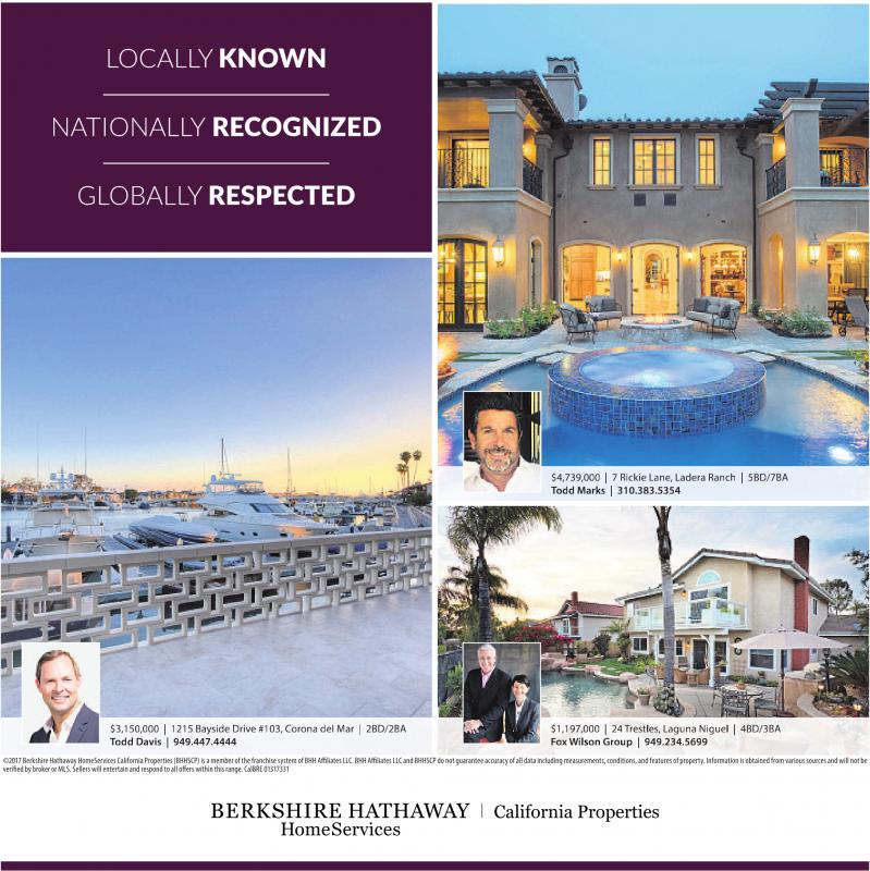 ©2017BerkshireHathawayHomeServicesCalifornia Properties (BHHSCP) is amemberofthe franchisesystemofBHH AffiliatesLLC.BHH AffiliatesLLC andBHHSCPdonot guaranteeaccuracyofall data including measurements, conditions, andfeatures of property.Information is obtained from various sources andwillnot be verified by brokerorMLS.Sellerswillentertain andrespond to allofferswithin this range.CalBRE01317331