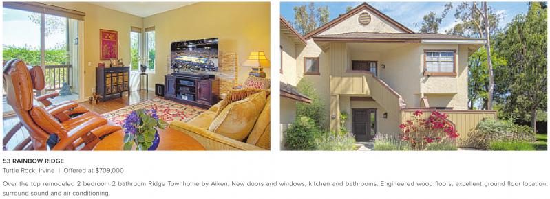 53 RAINBOW RIDGE Turtle Rock, Irvine | Offered at $709,000 Over the top remodeled 2 bedroom 2 bathroom Ridge Townhome by Aiken. New doors and windows, kitchen and bathrooms. Engineered wood floors, excellent ground floor location, surround sound and air conditioning.