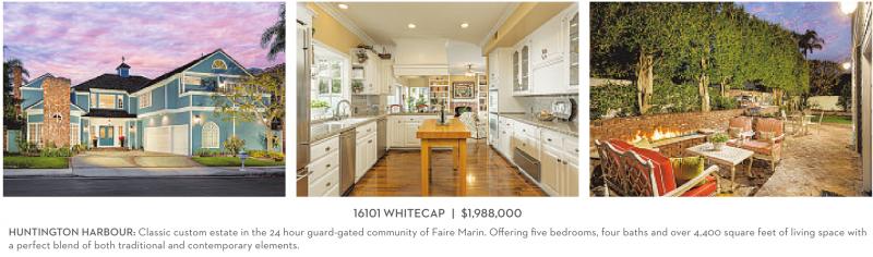 16101 WHITECAP | $1,988,000 HUNTINGTON HARBOUR: Classic custom estate in the 24 hour guard-gated community of Faire Marin. Offering five bedrooms, four baths and over 4,400 square feet of living space with a perfect blend of both traditional and contemporary elements.