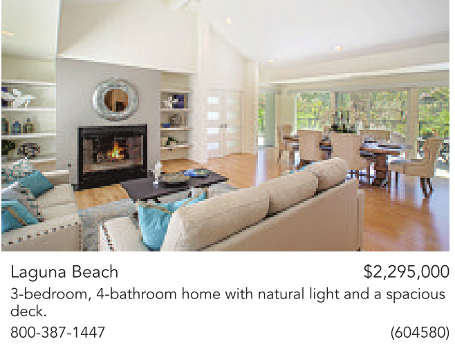 Laguna Beach $2,295,000 3-bedroom, 4-bathroom home with natural light and a spacious deck.