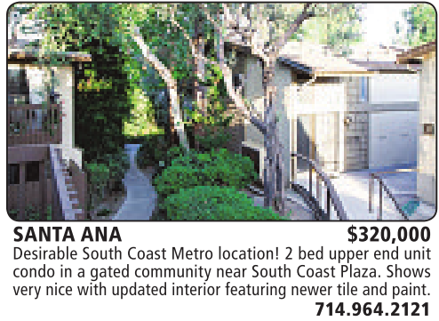 SANTA ANA $320,000 Desirable South Coast Metro location! 2bed upper end unit condo inagated community near South Coast Plaza. Shows very nice with updated interior featuring newer tile and paint.