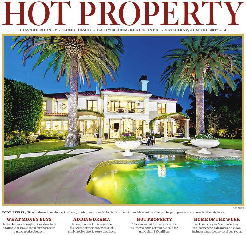 CODY LEIBEL, 36, a high-end developer, has bought what was once Reba McEntire’s home. He’s believed to be the youngest homeowner in Beverly Park.