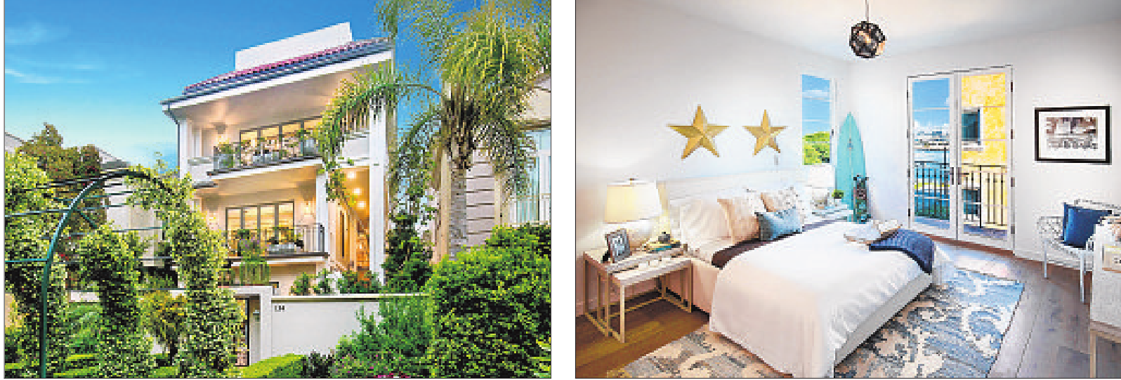 Tucked within a garden courtyard, this remodeled three-story in Marina del Rey takes entertaining to new heights, with a penthouselevel bar room that opens to an ocean-view deck space. Scaled formal rooms, a media room with a wet bar and an elevator keep the party lit on all floors.