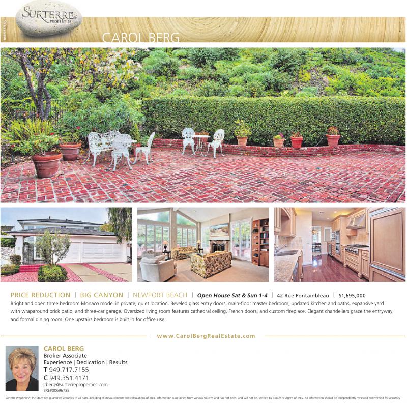 CAROL BERG Broker Associate Experience | Dedication | Results T 949.717.7155 C 949.351.4171 cberg@surterreproperties.com