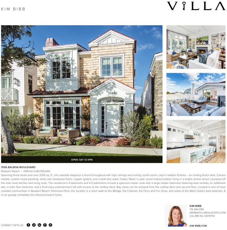 KIM BIBB 714 396 0185 KBIBB@VILLAREALESTATE.COM CAL BRE No. 01210754