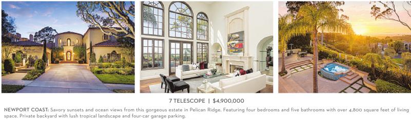 NEWPORT COAST: Savory sunsets and ocean views from this gorgeous estate in Pelican Ridge. Featuring four bedrooms and five bathrooms with over 4,800 square feet of living space. Private backyard with lush tropical landscape and four-car garage parking.