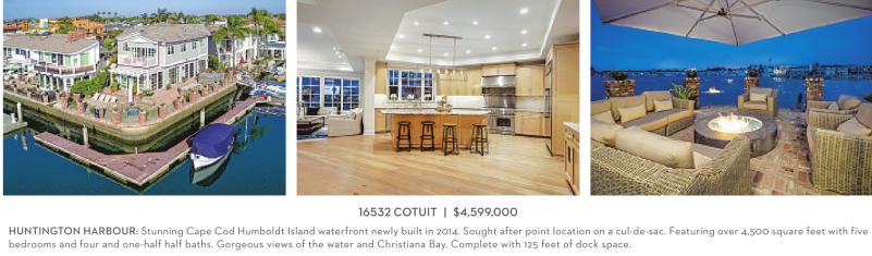HUNTINGTON HARBOUR: Stunning Cape Cod Humboldt Island waterfront newly built in 2014. Sought after point location on a cul-de-sac. Featuring over 4,500 square feet with five bedrooms and four and one-half half baths. Gorgeous views of the water and Christiana Bay. Complete with 125 feet of dock space.