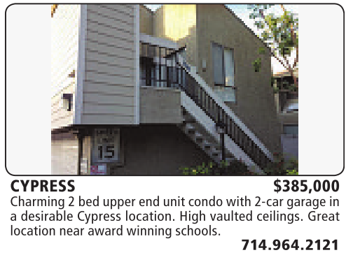 CYPRESS $385,000 Charming2bed upperend unit condowith2-car garage in a desirable Cypress location. High vaulted ceilings. Great location near awardwinningschools.