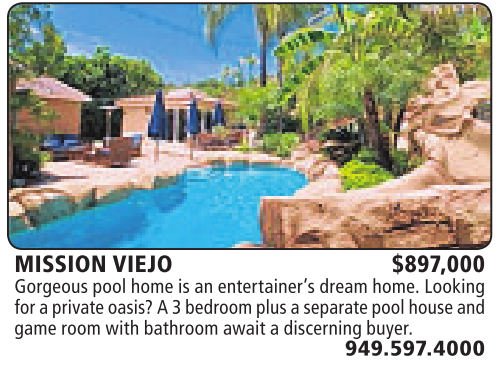 MISSION VIEJO $897,000 Gorgeous poolhomeisanentertainer’s dreamhome.Looking for aprivateoasis?A3bedroomplusaseparate poolhouseand gameroomwithbathroomawait adiscerningbuyer.