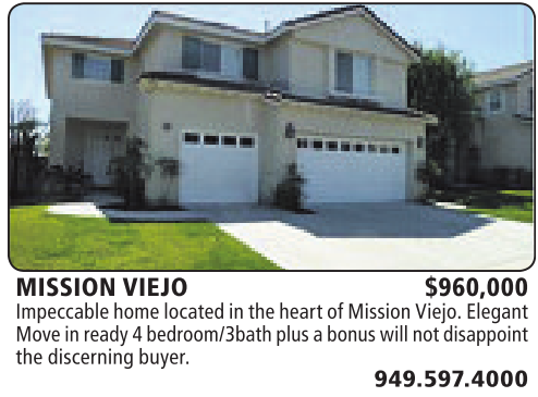MISSION VIEJO $960,000 Impeccable homelocated in theheart of MissionViejo.Elegant Move in ready4bedroom/3bathplusabonus will notdisappoint thediscerningbuyer.