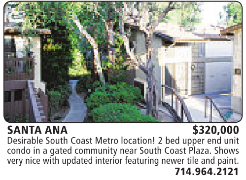 SANTA ANA $320,000 Desirable South Coast Metro location! 2bed upper end unit condo inagated community near South Coast Plaza. Shows very nice with updated interior featuring newer tile and paint.