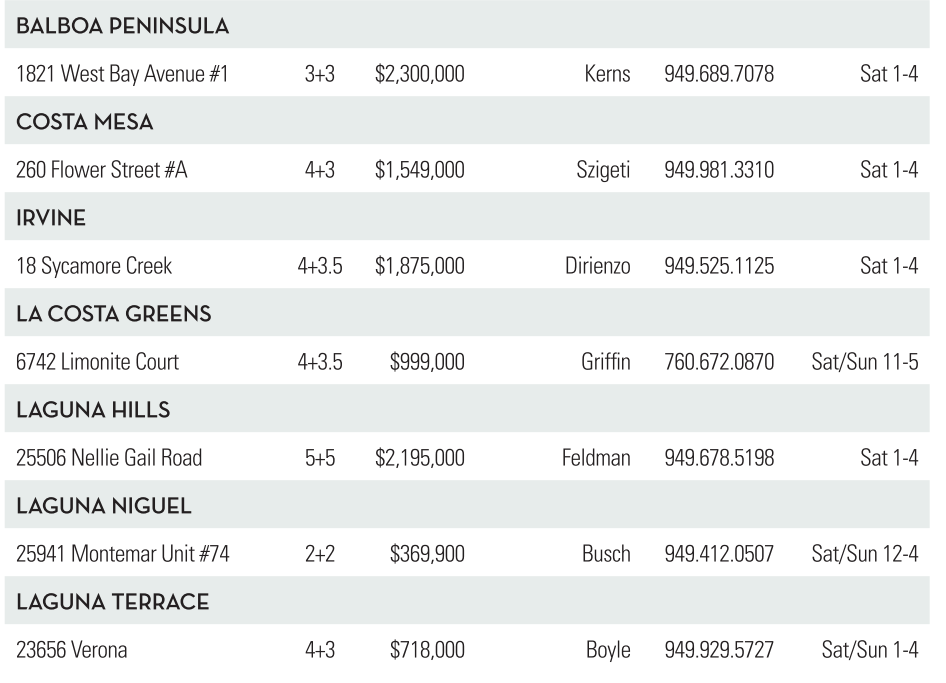 260 Flower Street #A 4+3 $1,549,000 Szigeti 949.981.3310 Sat 1-4