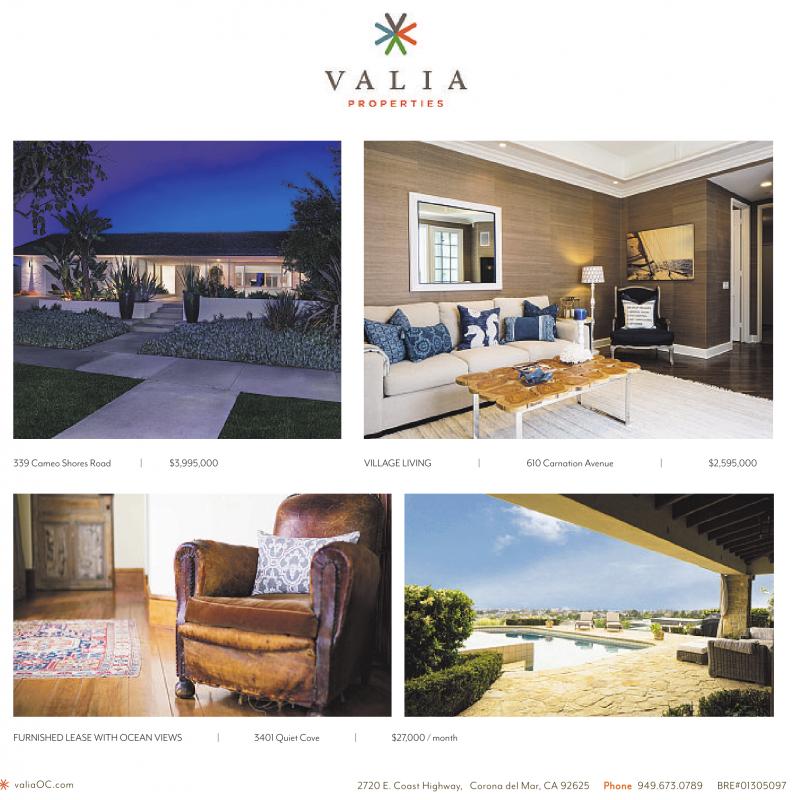 valiaOC.com 2720 E. Coast Highway, Corona del Mar, CA 92625 Phone 949.673.0789 BRE#01305097