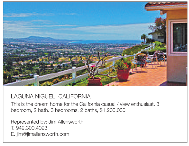 LAGUNA NIGUEL, CALIFORNIA This is the dream home for the California casual /view enthusiast. 3 bedroom, 2bath. 3bedrooms, 2baths, $1,200,000
