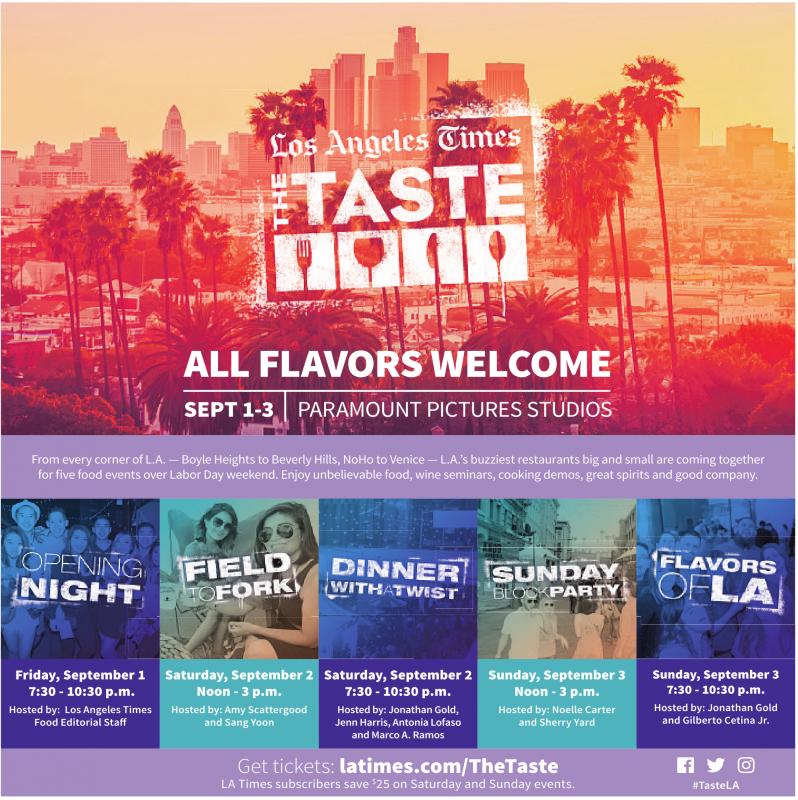 From every corner of L.A. — Boyle Heights to Beverly Hills, NoHo to Venice — L.A.’s buzziest restaurants big and small are coming together for five food events over Labor Day weekend. Enjoy unbelievable food, wine seminars, cooking demos, great spirits and good company.