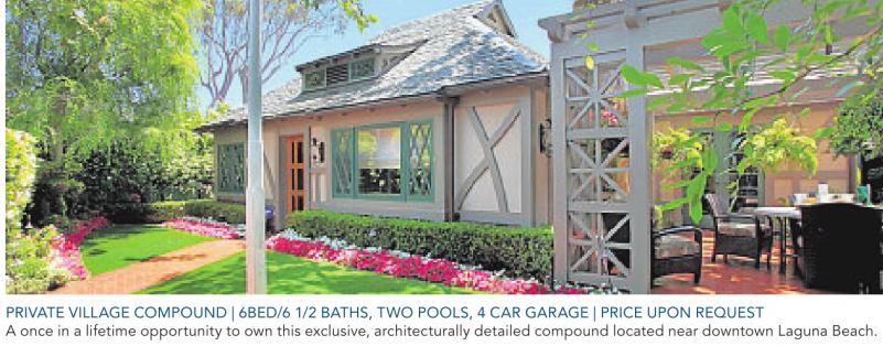 PRIVATE VILLAGE COMPOUND | 6BED/6 1/2 BATHS, TWO POOLS, 4 CAR GARAGE | PRICE UPON REQUEST A once in a lifetime opportunity to own this exclusive, architecturally detailed compound located near downtown Laguna Beach.