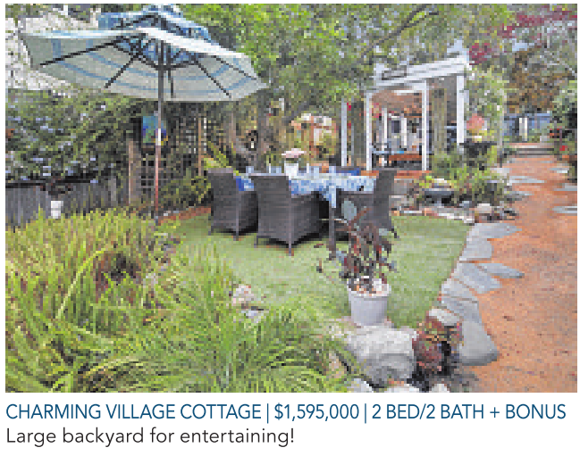 CHARMING VILLAGECOTTAGE |$1,595,000 |2BED/2BATH+BONUS Large backyard for entertaining!