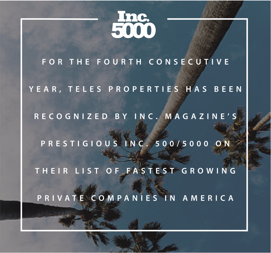 F O R T H E F O U R T H C O N S E C U T I V E Y E A R , T E L E S P R O P E R T I E S H A S B E E N R E C O G N I Z E D B Y I N C . M A G A Z I N E ’ S P R E S T I G I O U S I N C . 5 0 0 / 5 0 0 0 O N T H E I R L I S T O F F A S T E S T G R O W I N G P R I V A T E C O M P A N I E S I N A M E R I C A