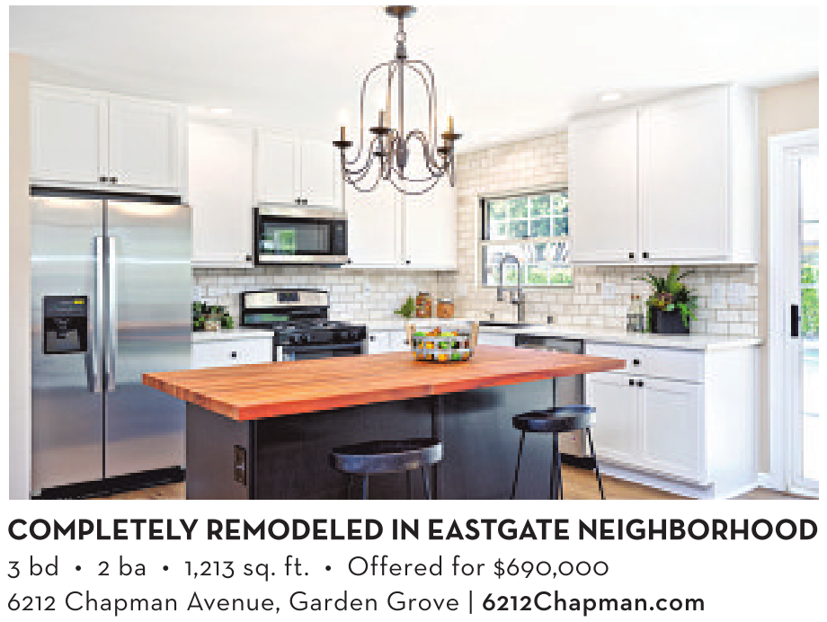 COMPLETELY REMODELED IN EASTGATE NEIGHBORHOOD 3 bd • 2 ba • 1,213 sq. ft. • Offered for $690,000 6212 Chapman Avenue, Garden Grove | 6212Chapman.com