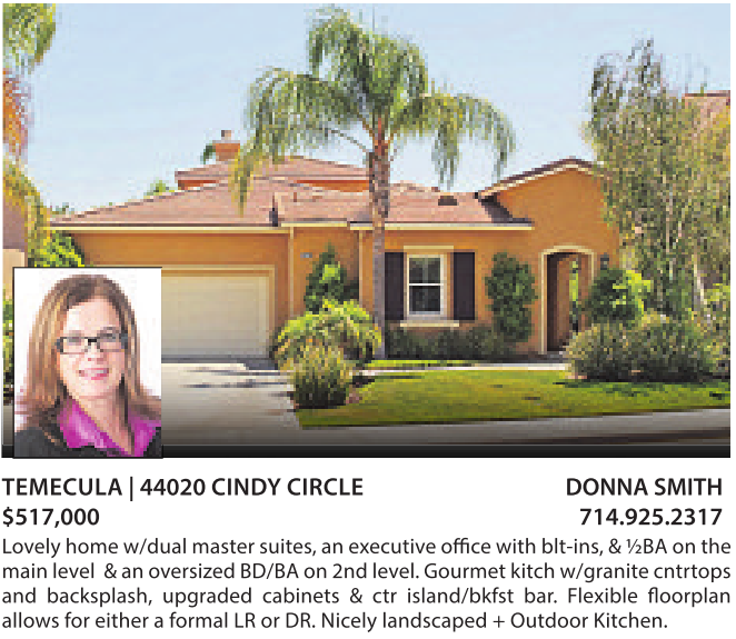 $517,000 714.925.2317 Lovely home w/dual master suites,anexecutiveoffice withblt-ins,&½BA on the mainlevel &anoversized BD/BA on 2nd level.Gourmet kitchw/granitecntrtops