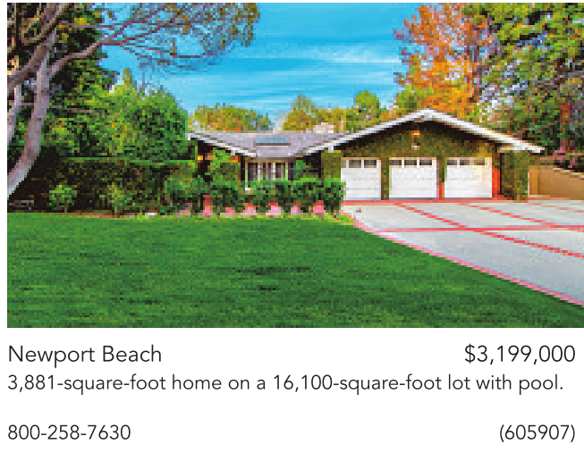 Newport Beach $3,199,000 3,881-square-foot home on a 16,100-square-foot lot with pool.