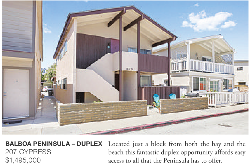 BALBOA PENINSULA – DUPLEX 207 CYPRESS $1,495,000