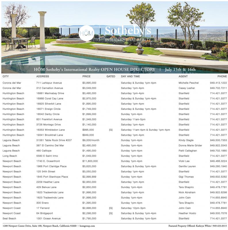 HÔM Sotheby's International Realty OPEN HOUSE DIRECTORY | July 15th & 16th
