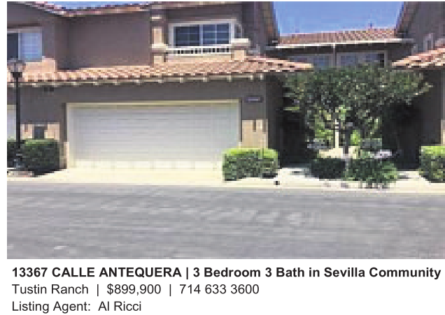 13367 CALLE ANTEQUERA |3Bedroom 3Bath inSevilla Community Tustin Ranch | $899,900 | 714 633 3600 Listing Agent: AlRicci
