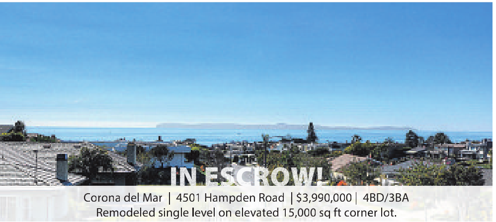 Corona del Mar | 4501 Hampden Road | $3,990,000 | 4BD/3BA Remodeled single level on elevated 15,000 sq ft corner lot.