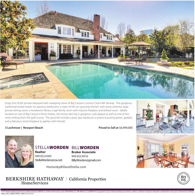 ©2017 BerkshireHathaway HomeServices California Properties (BHHSCP)isamember of the franchise system of BHH AffiliatesLLC.BHH AffiliatesLLC and BHHSCP do not guaranteeaccuracyofall data including measurements,conditions,and features of property.Information is obtained from varioussources and will not be verified by broker or MLS. CalBRE# 01900937, 00861572, 01317331.