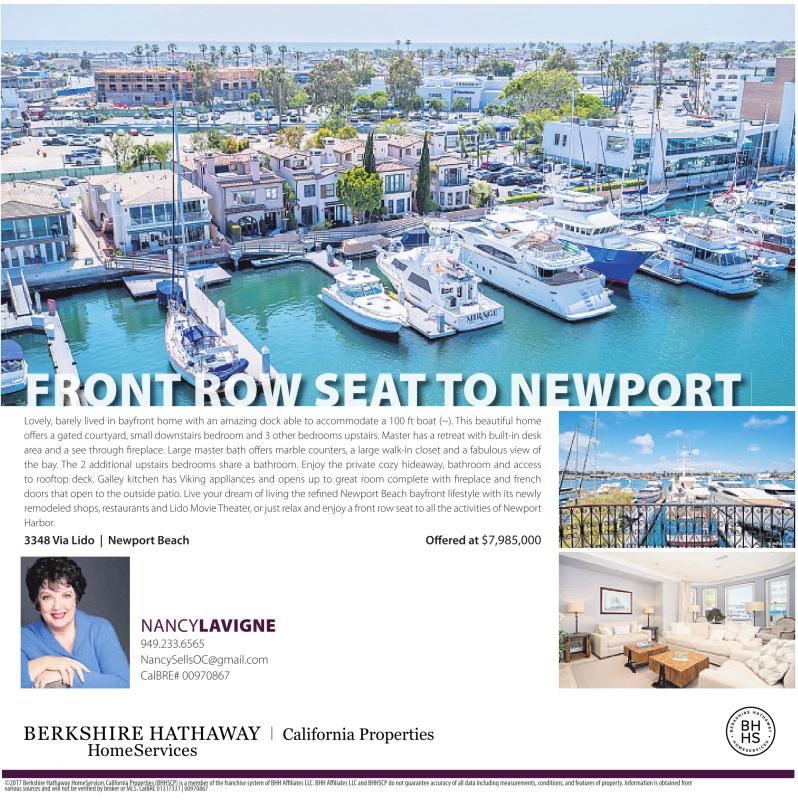 Lovely, barely lived in bayfront home with an amazing dock able to accommodate a 100 ft boat (~). This beautiful home offers a gated courtyard, small downstairs bedroom and 3 other bedrooms upstairs. Master has a retreat with built-in desk area and a see through fireplace. Large master bath offers marble counters, a large walk-in closet and a fabulous view of the bay. The 2 additional upstairs bedrooms share a bathroom. Enjoy the private cozy hideaway, bathroom and access to rooftop deck. Galley kitchen has Viking appliances and opens up to great room complete with fireplace and french doors that open to the outside patio. Live your dream of living the refined Newport Beach bayfront lifestyle with its newly remodeled shops,restaurants andLido Movie Theater,orjust relax and enjoy afront rowseat to all the activities of Newport Harbor. 3348 Via Lido | Newport Beach Offered at $7,985,000